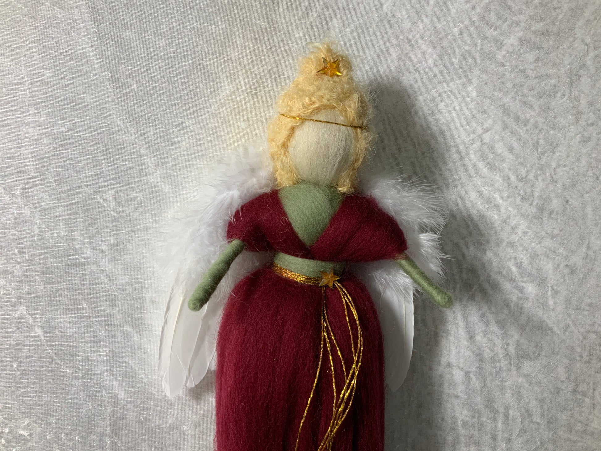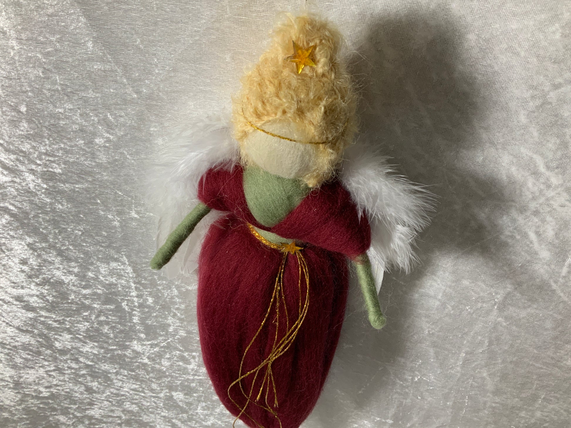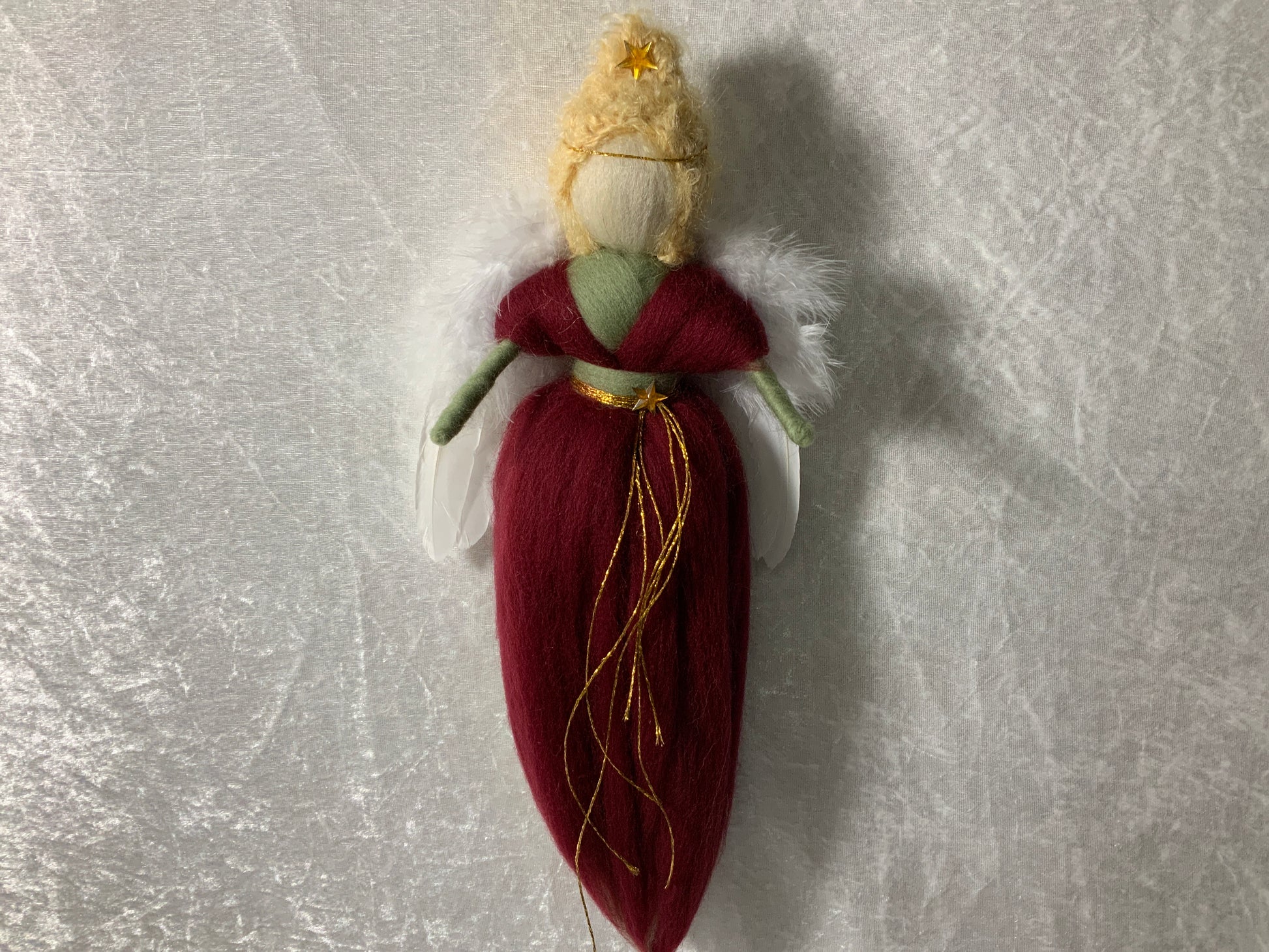 Engel aus Merinowolle in Weinrotmit einem Stern