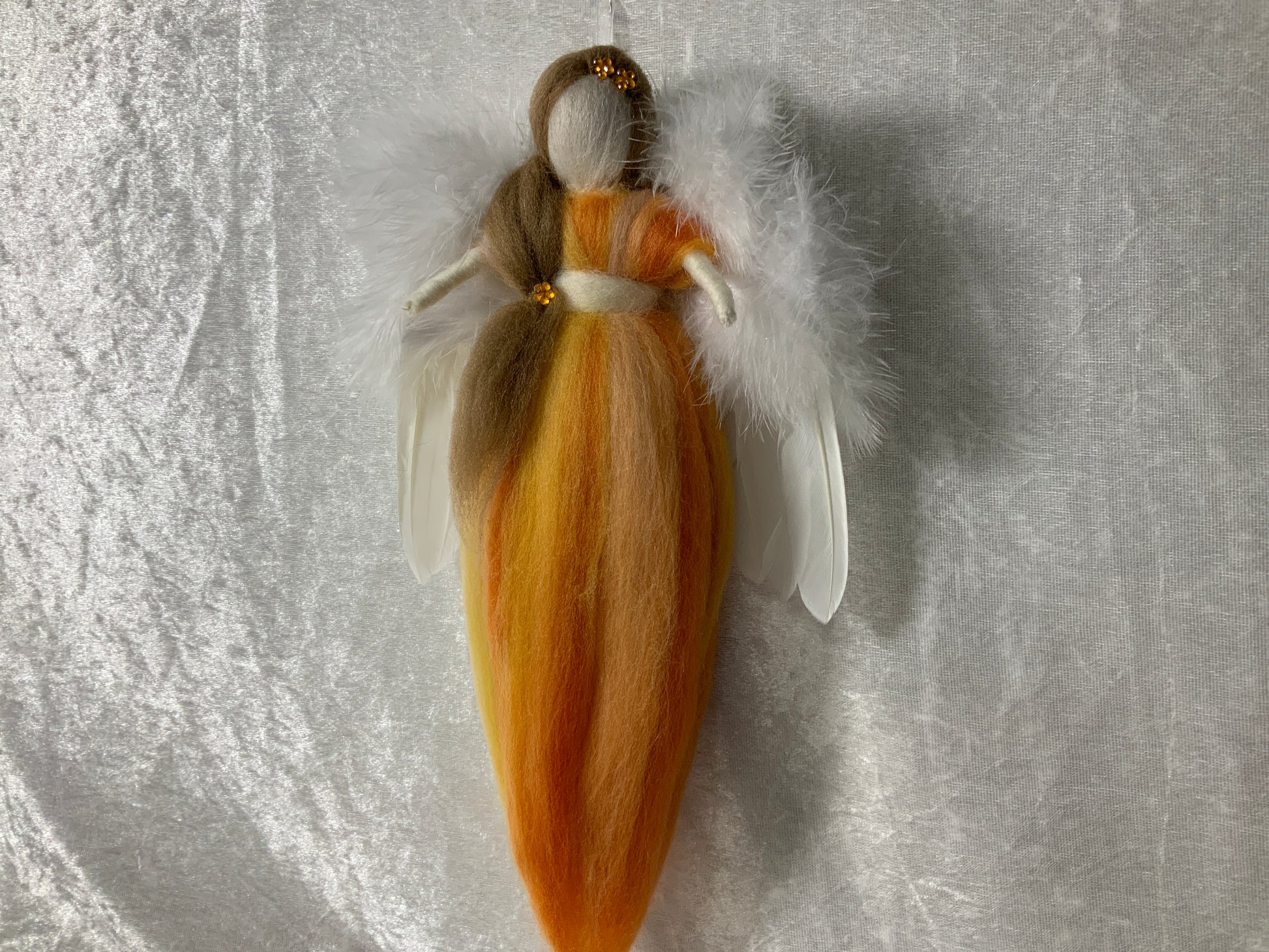 Ein super schöner Engel in Herbstlichen Orange Tönen mit einer Größe von ca 28 cm zum hinhängen. Egal ob im Fenster oder in einem Kranz, an der Türe oder in der Wohnung, der kleine Engel ist ein Beschützer in allen Situationen. Handarbeit, mit Liebe angefertigt.