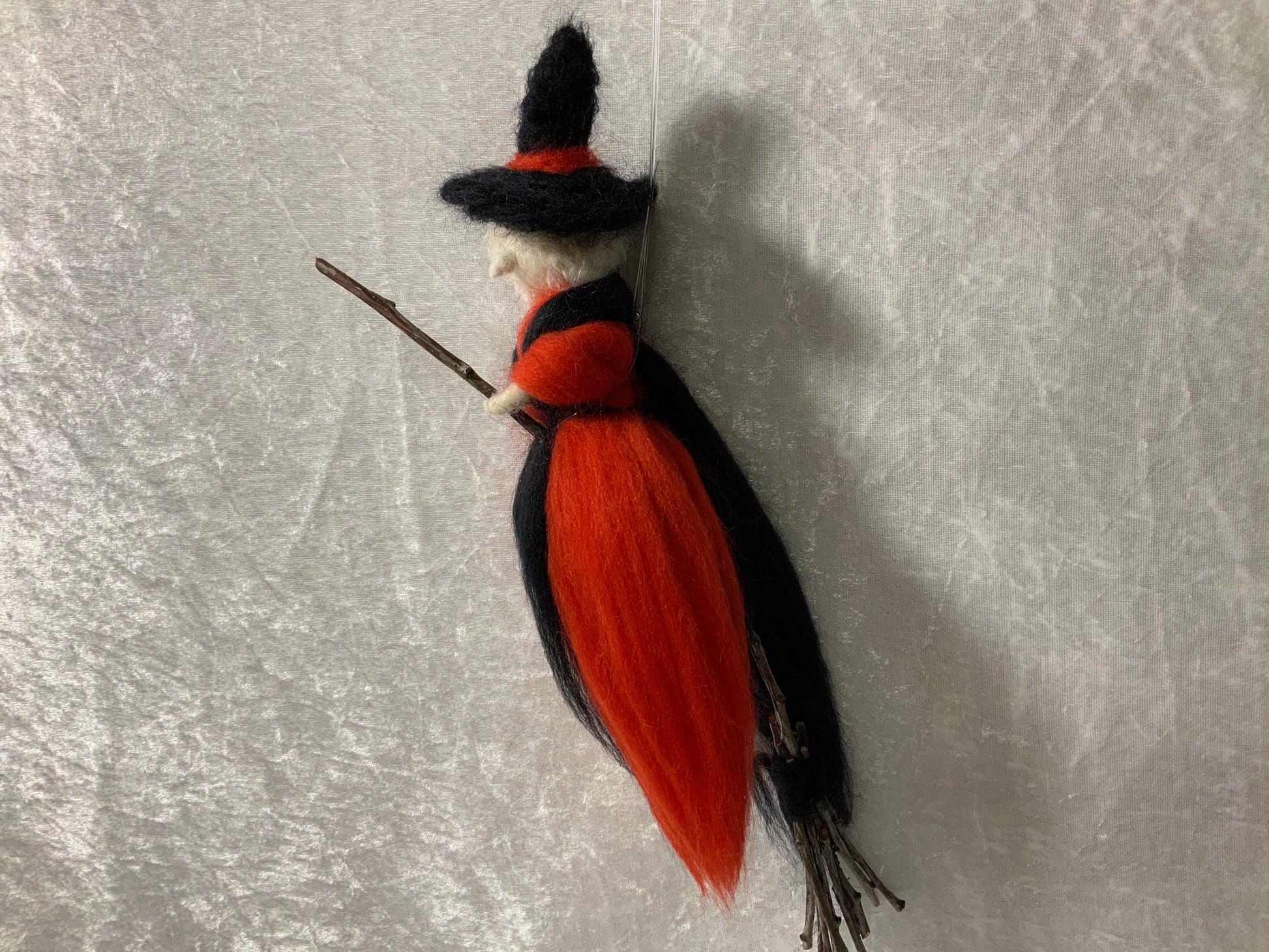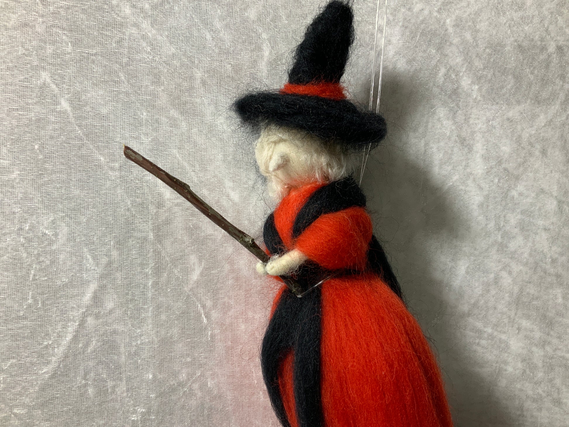 Herbstliche Hexe aus Merinowolle in Rot & Schwarz