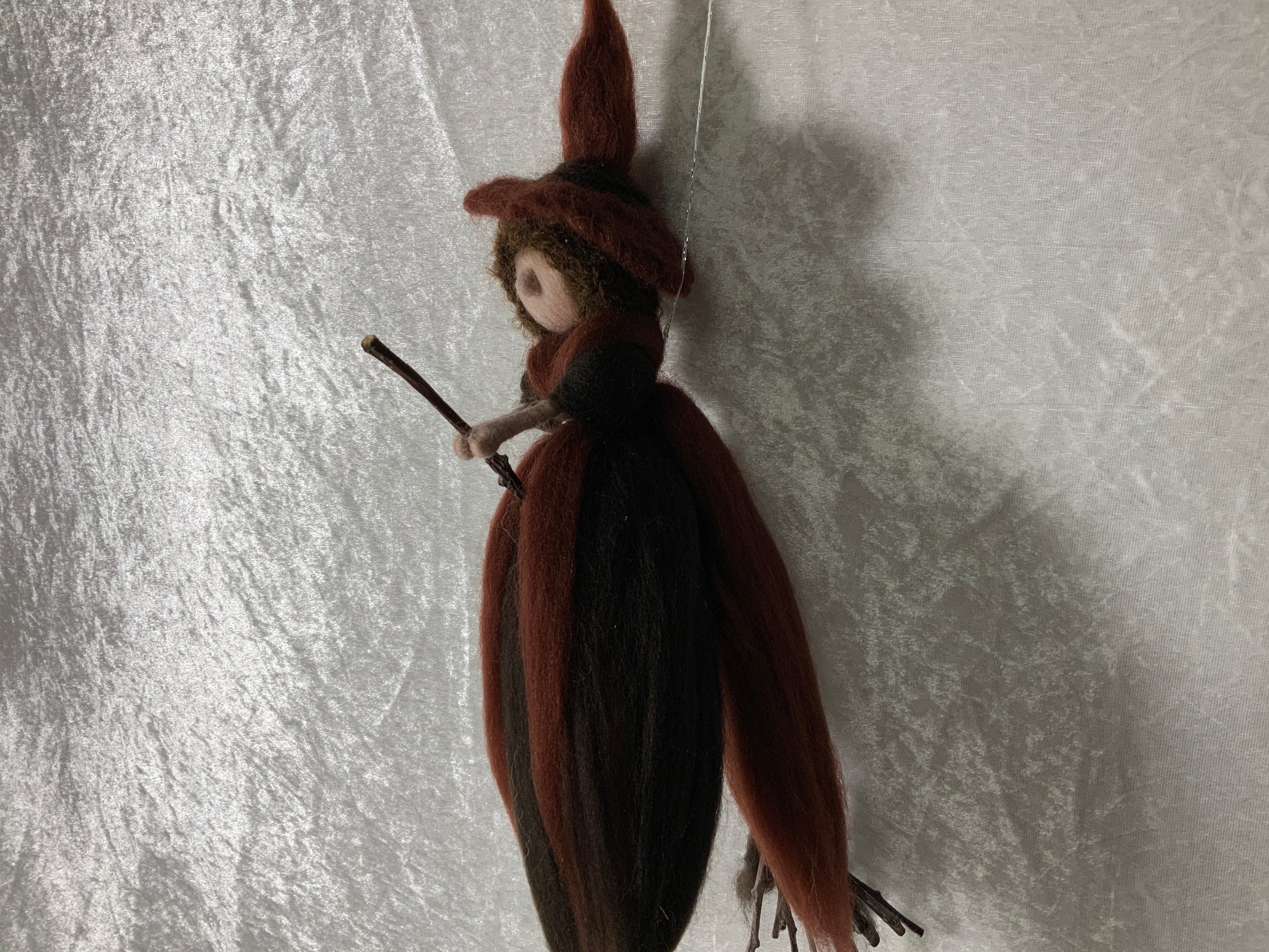 Diese super süße Hexe ist aus Merinowolle angefertigt worden und passt super in ihre Wohnung oder das Haus in der Herbstlichen Jahreszeit.