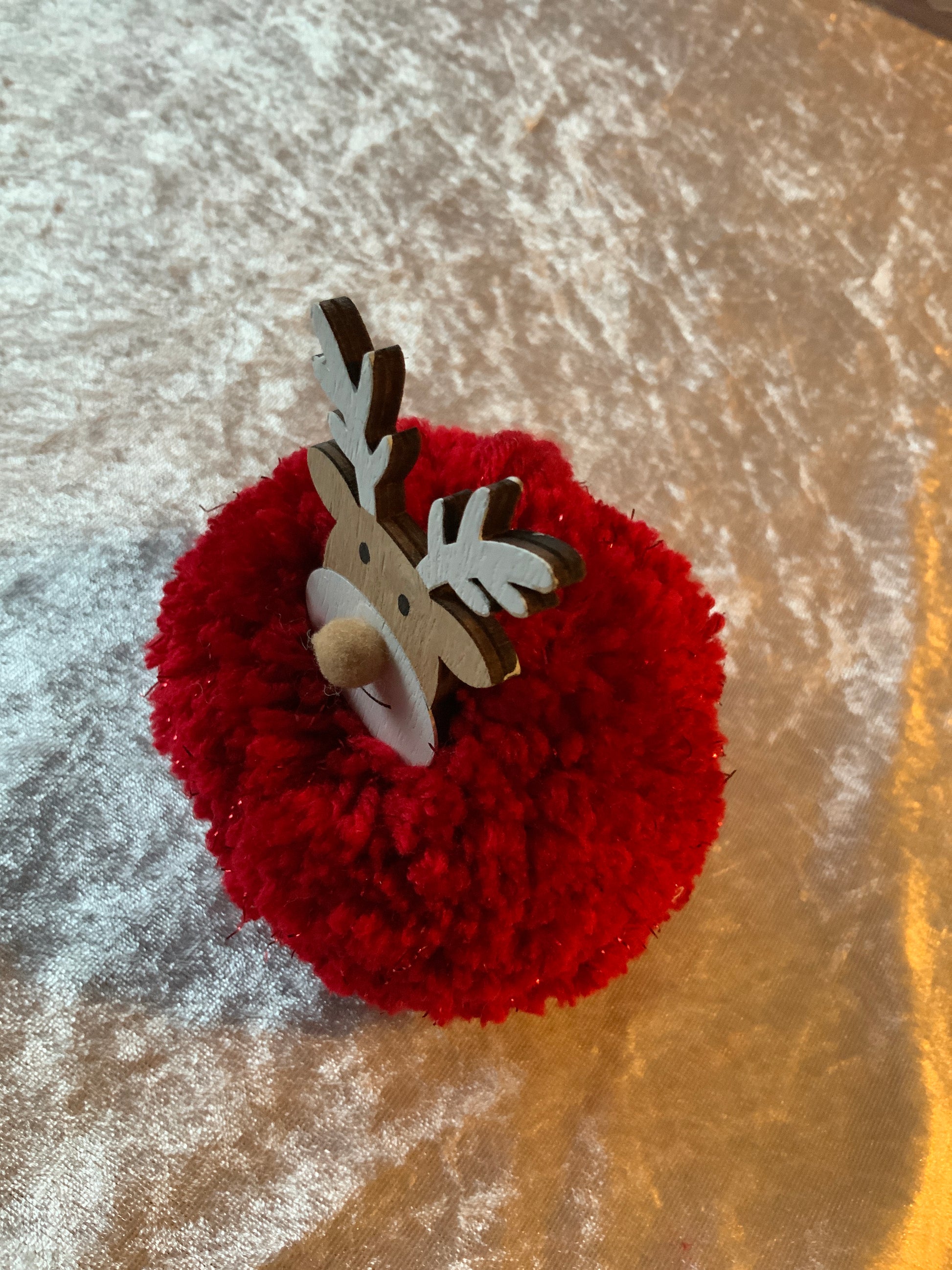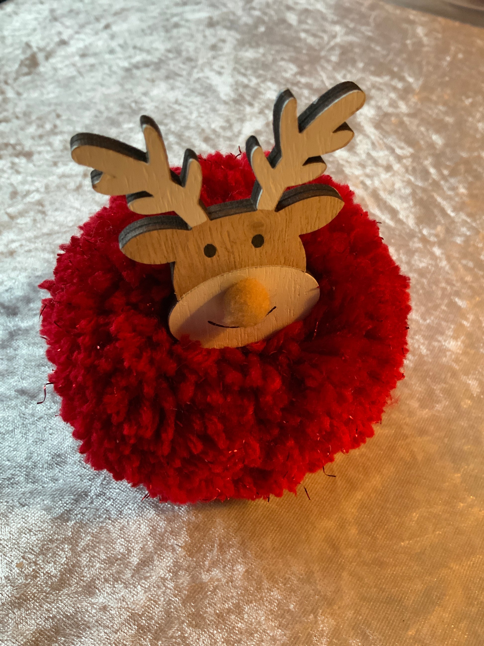 Dieses kleine Rentier in Rot wurde aus Wolle gefertigt, es hat 4 kleine Füße und auch einen kleinen Aufhänger so das man es an den Tannenbaum hängen kann.