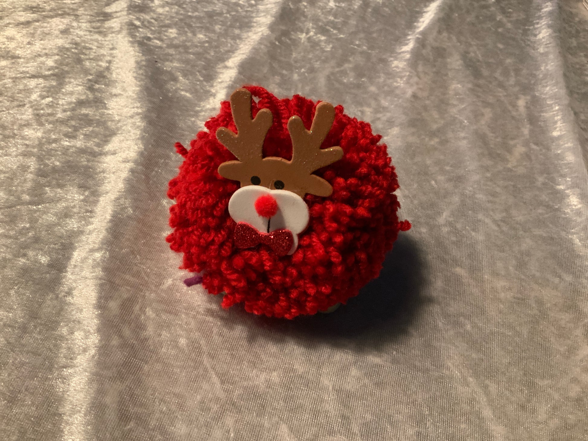 Dieses kleine Rentier in Rot wurde aus Wolle gefertigt, es hat 4 kleine Füße und auch einen kleinen Aufhänger so das man es an den Tannenbaum hängen kann.