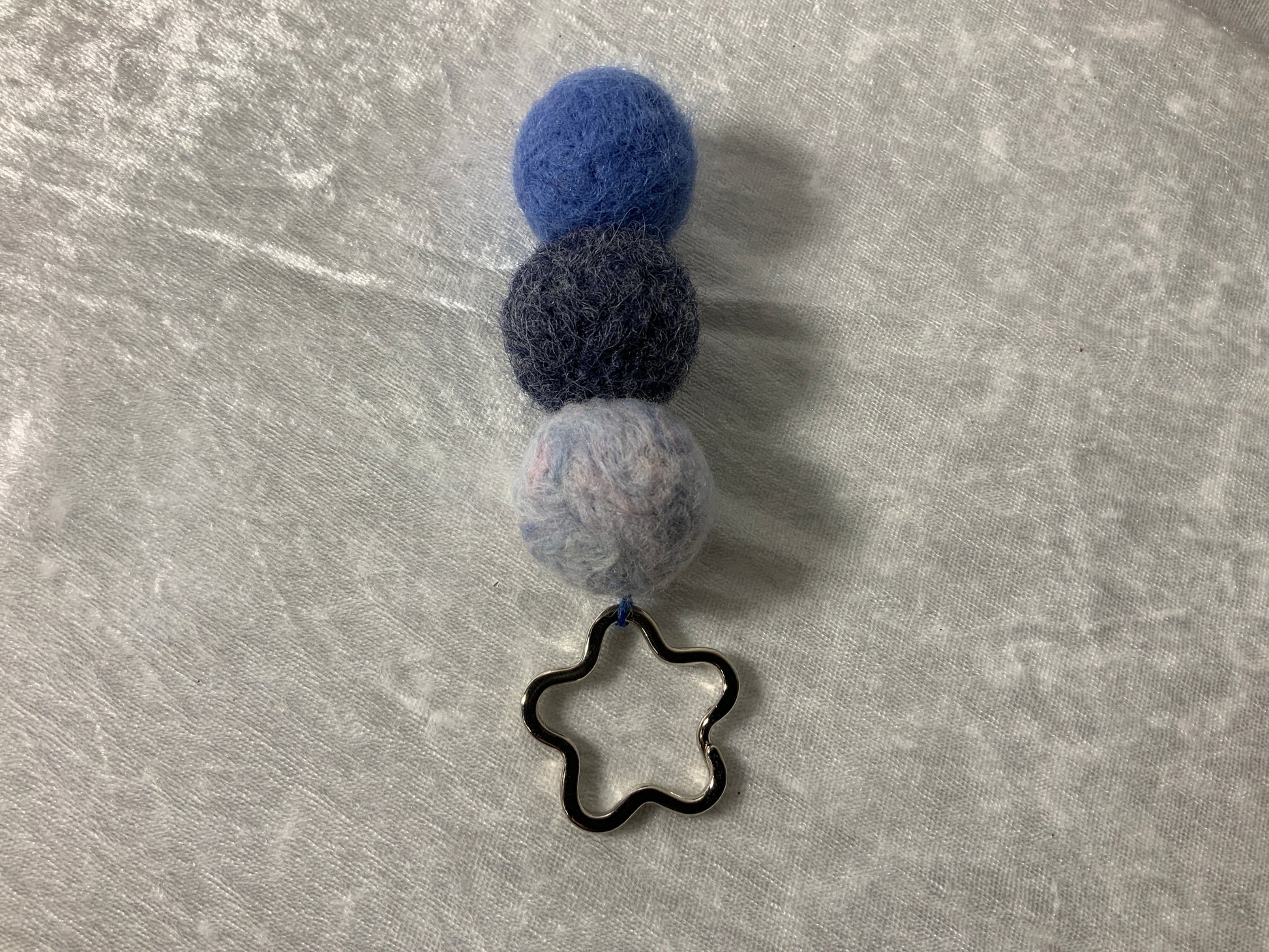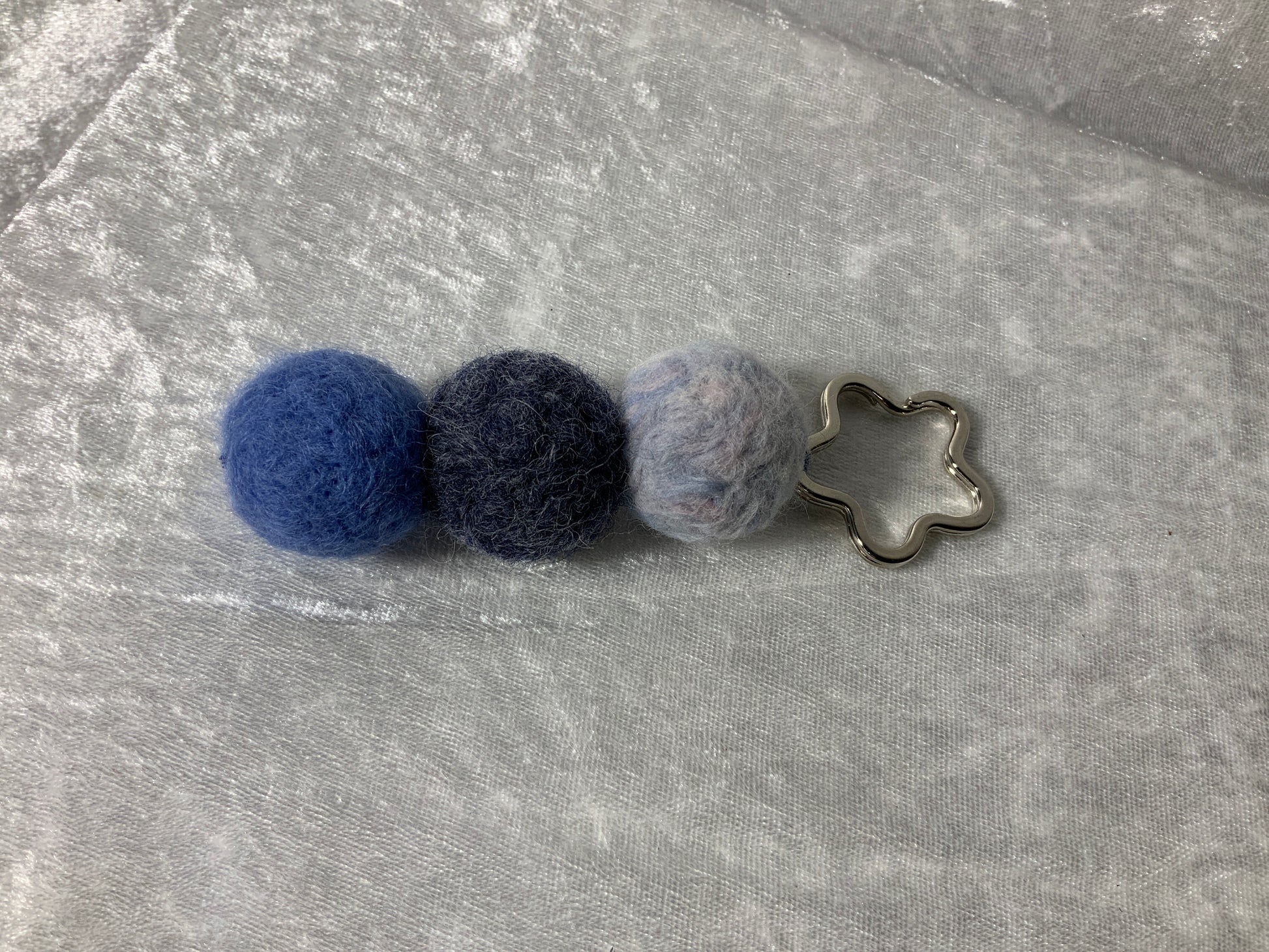 Handgefertigter Schlüsselanhänger mit Blauen Filz Kugeln