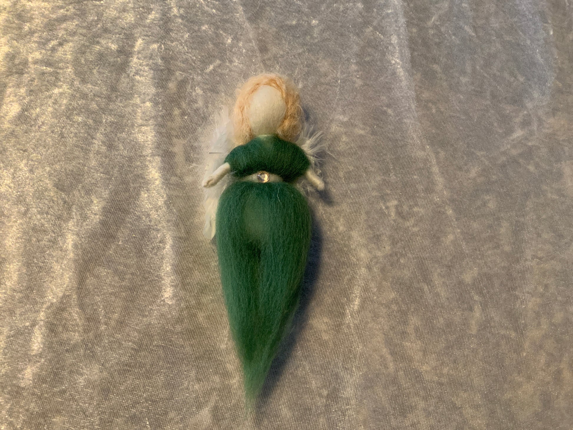 Dieser wunderschöne Engel wurde aus Merinowolle hergestellt, er glitzert in einem Grünen Kleid und hat wunderschöne große Flügel.