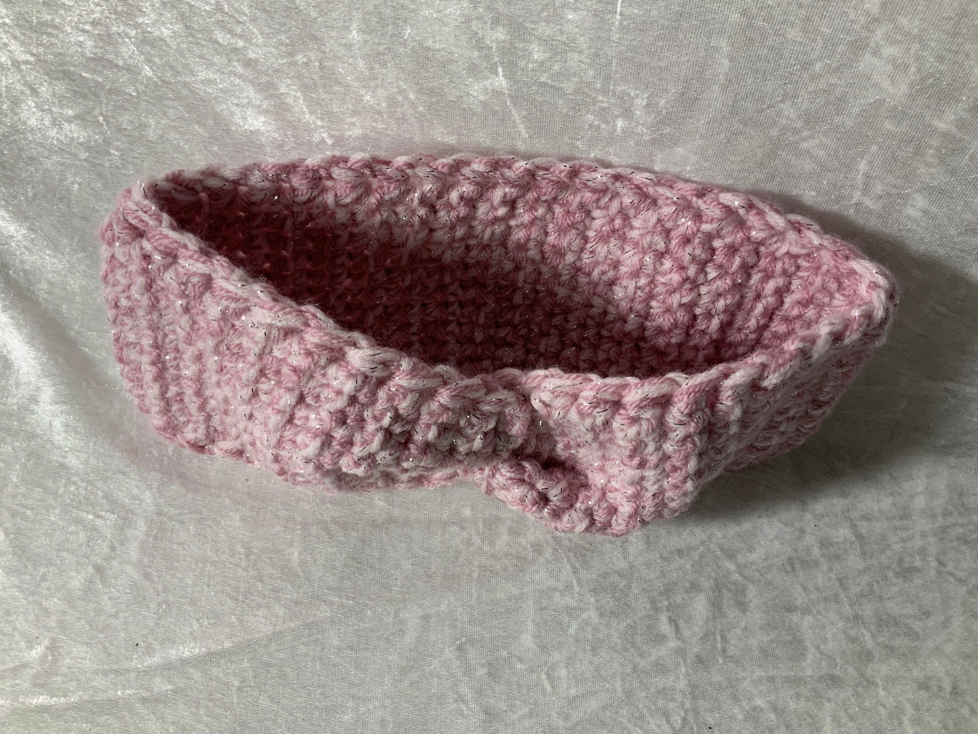 Gehäkeltes Stirnband in Rosa mit leichtem Glitzer