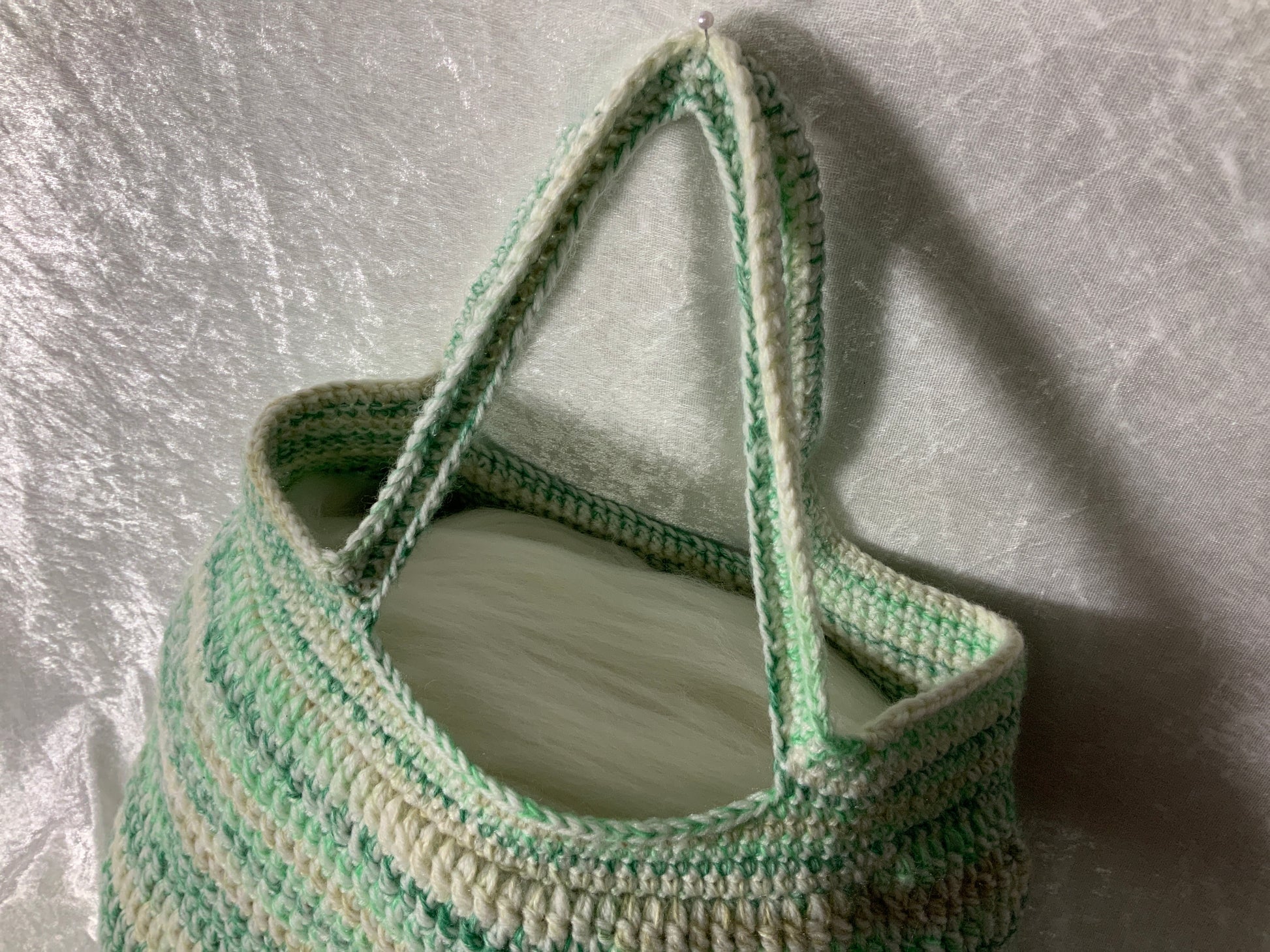 Handgefertigte Beuteltasche aus Wolle in Grün