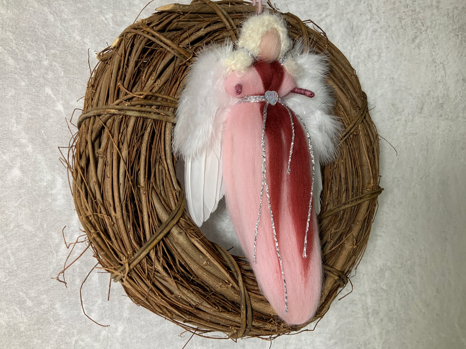 Dieser Türkranz besteht aus einem natürlichen Holzrahmen, an dem ein stilvoller Engel aus weicher Merinowolle hängt. Die Kombination aus robustem Holz und filigraner Wollfigur schafft eine harmonische Balance aus Stabilität und zarter Eleganz. Das handgefertigte Design bringt eine warme, einladende Atmosphäre an Ihren Hauseingang und verbindet traditionelle Handwerkskunst mit modernem, natürlichem Charme. Ein exklusives Dekorationsstück für anspruchsvolle Wohnstile.